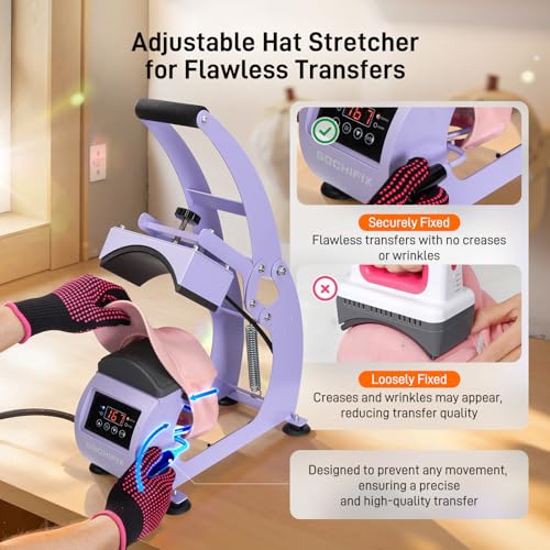 Wrinkle-Free Results: The hat stretcher can be adjusted up or down for easy positioning of the hat, ensuring it remains smooth without creases. The molded silicone lower platen reduces marks and scorching, guaranteeing flawless transfers. Achieve professional-quality results with every press, perfect for demanding projects
