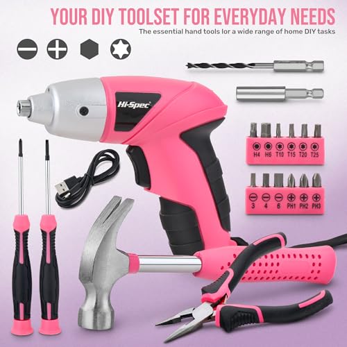 Specification: Hi-Spec Cordless Electric Screwdriver, Power Screw Driver Set with Pink Compact Tool Kit for Small Repair and Maintenance- Ideal Housewarming Gift,19 Piece