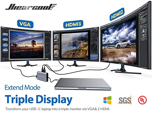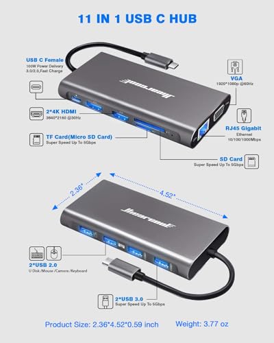 Specification: Hiearcool USB C Hub, USB-C Laptop Docking Station, 11IN1 Triple Display Type C Adapter Compatible for Dell Hp Lenovo Windows (2HDMI VGA PD3.0 SD TF Card Reader Gigabit Ethernet 4USB Ports)