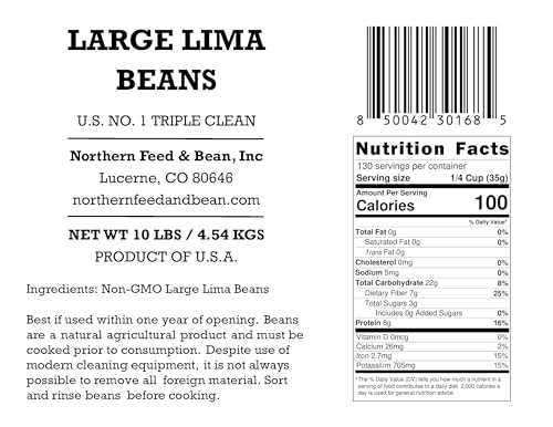 Specification: High Plains Large Lima Beans | 10 Pound Bag | Farm-Fresh | Non-GMO Verified | High Protein & Fiber Source | Dry Beans | Directly Sourced from Local Farmers