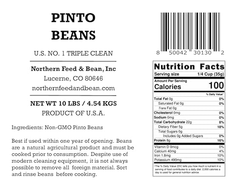Specification: High Plains Pinto Beans | 10 Pound Bag | Farm-Fresh Pinto Beans | Non-GMO Verified | High Protein & Fiber Source | Dry Beans | Directly Sourced from Local Farmers