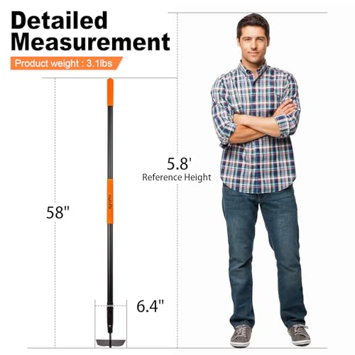 Right Size Design: At 58 inches in overall length, the heavy duty weeding hoe is sized to reduce back strain from frequent bending, and the wider blade of the hoe covers a wider area for more efficient gardening.