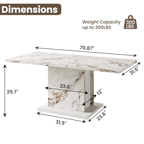 Specification: HOMISSUE 71″ Inch Modern Dining Table, Rectangle Dinner Table for 6-8 People, Faux Marble Dining Table with Sturdy Base, Large Kitchen Table for Dining Room, Living Room, White