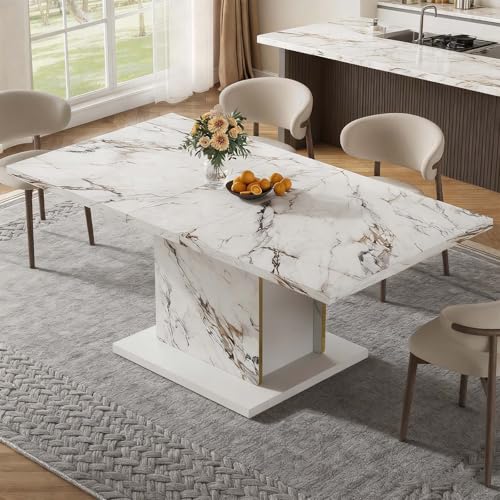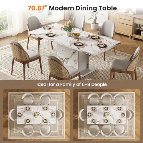 HOMISSUE 71″ Inch Modern Dining Table, Rectangle Dinner Table for 6-8 People, Faux Marble Dining Table with Sturdy Base, Large Kitchen Table for Dining Room, Living Room, White