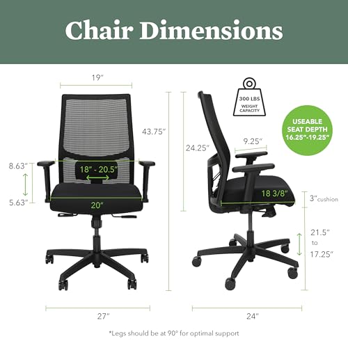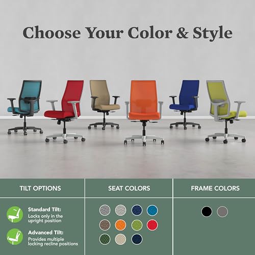 Experience the HON Ignition 2.0 Mid Back Ergonomic Office Chair—engineered for all-day comfort and fatigue reduction. This home office chair adapts to dynamic workplaces. An advanced synchro-tilt mechanism secures your recline, while tension control and pneumatic lift position you level with any desk. The 4-way stretch mesh maximizes airflow. Integrated ergonomic office chair lumbar support, movable lumbar panel, and seat-slide create reliable office chair back support, turning everyday tasks into a desk chair comfortable routine. Height- and width-adjustable arms add flexibility, and the sturdy five-star base keeps this desk chair with wheels stable. This office chair with wheels glides quietly, making it an easy chair with wheels for shared spaces. Smooth casters and 360° swivel form a maneuverable rolling chair that suits desk chair ergonomic demands. Rated to 300 lb and backed by the HON Limited Lifetime Warranty, it is a steadfast computer chair and ergonomic chair for varied settings. Professionals who want a comfy office chair, office chair comfy choice, or the most comfortable office chair will value its office chair support. Those seeking a comfortable office chair, comfy desk chair, or modern office chair will find Ignition 2.0 meets expectations. When tasks call for office chairs built for focus, simply say, “Ignition is my office chair.”