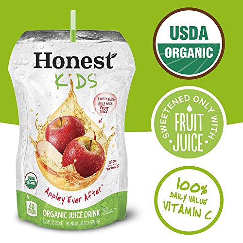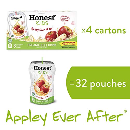 Honest Kids Organic Appley Ever After Fruit Juice, 8 Packs, Sugar Free, 54 Fluid Ounces (Pack Of 4)