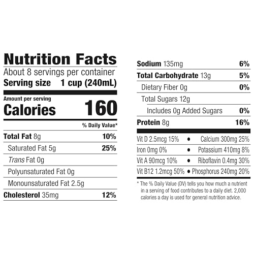 Essential Nutrients in Each Serving: Each serving of this lactose free milk half gallon has 8g of protein and nutrients including calcium, vitamin A and vitamin D