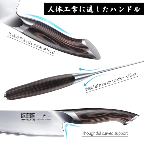 Specification: HOSHANHO 7 Pieces Kitchen Knife Set, Japanese High Carbon Stainless Steel Magnetic Knife Block Set, Ultra Sharp Chef Knives Sets with Ergonomic Pakkawood Handle