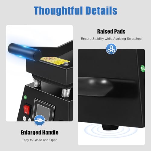 Specification: Hot Press Machine with Enlarged Handle Temperature and Time Adjustable 450W Black for T-Shirt Clothing Bags Mouse Pads Puzzles Tiles
