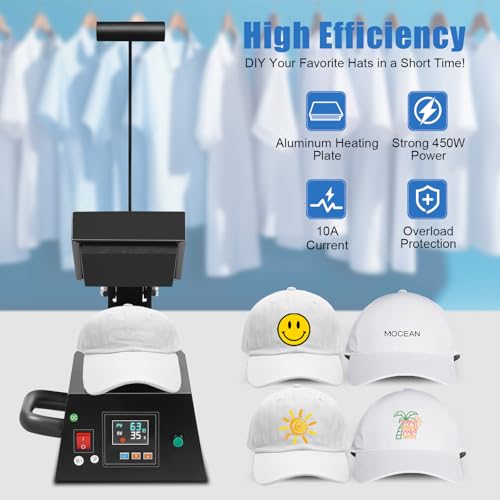 Even Heating: The rectangular heating pad heats up evenly and prints the graphic onto T-shirts or hats. In addition, the adjustable temperature (32-482°F) and adjustable time (0-999s) can meet your different graphic printing needs, with even colors and clear graphics.