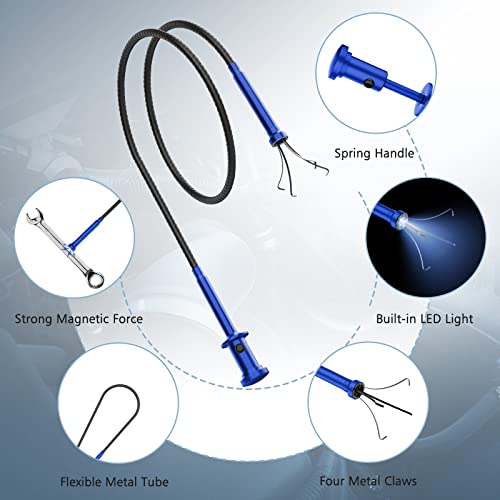 Specification: Housolution 28.34in Grabber Tool Magnetic Four-Claw Picker, Bendable Hose Reacher Pickup Sweeper with LED Light Battery, Flexible Long Handy Reaching Assist Tool for Litter Pick/Home Sink/Drain, Blue