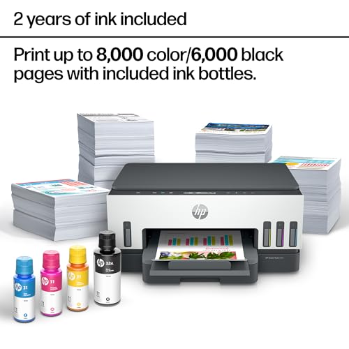 HP Smart Tank 7001 Wireless All-in-One Ink Tank Printer, Scanner, Copier with 2 Years of Ink Included, Best-for-Home Office, Cartridge-Free Refillable, AI-Enabled (28B49A)