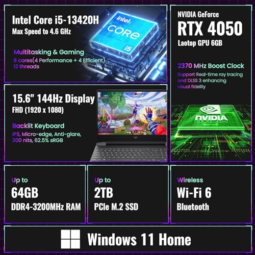 Specification: HP Victus 15 Intel i5-13420H (Beats Intel i7-12650H), NVIDIA RTX 4050 Gaming Laptop, 15.6 FHD 144Hz IPS, 32GB RAM, 2TB SSD, Wi-Fi 6, Backlit KB, Win11 Home, Bundle with PCO Notebook Folding Radiator
