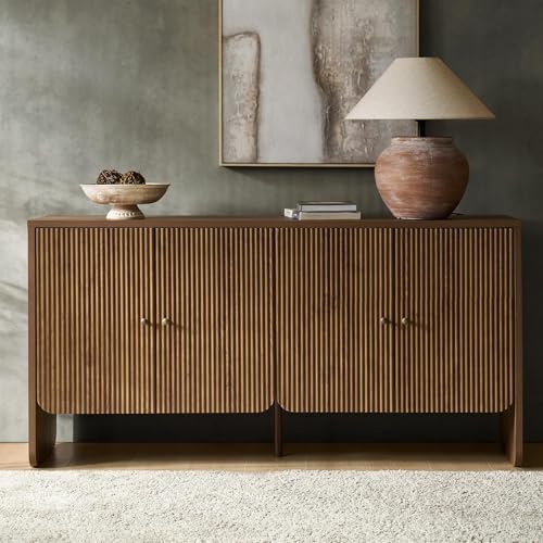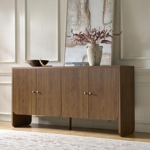 Specification: HULALA HOME 63″ Wide Fluted Sideboard Buffet Cabinet Solid Wood, Modern Storage with 4 Adjustable Shelves & Doors, Multifunctional Credenza for Dining Room,Living Room,Entryway,Walnut