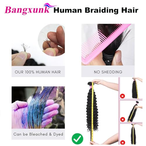 Human Braiding Hair Quality: Water wave human braiding hair can be bleached, Dyed; pre-stretched smooth ends; No tangle & No shedding; No smell & Chemical free & Itch free; Great for people who are allergic to some synthetic braiding hair.