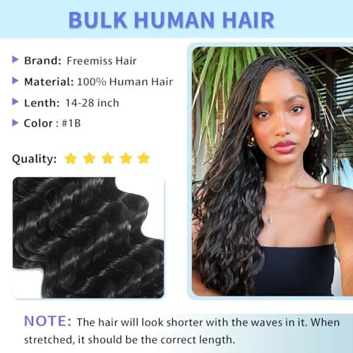 Specification: Human Braiding Hair for Boho Braids 100g 20 Inch Deep Wave Bulk Human Hair 100% Unprocessed 12A Brazilian Virgin Boho Hair for Braiding Knotless 2 Bundles/Pack Natural Color