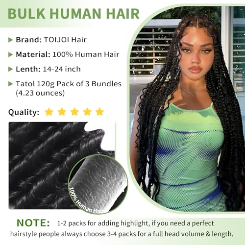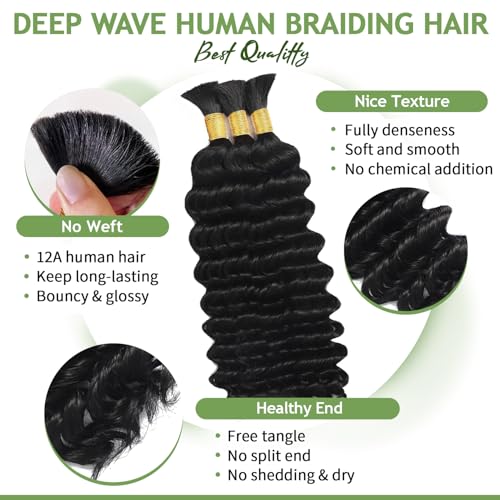 Specification: Human Braiding Hair for Boho Braids 120g 20 Inch 12A Deep Water Wave Bulk Human Hair Knotless Boho Braiding Curly 100% Virgin No Weft Extensions Bohemian Braids 3 Bundles/Pack Natural Color