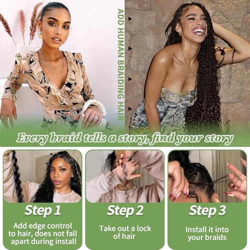 👑Salon Raw Quality: Our boho hair for braiding uses 100% unprocessed Brazilian Remy virgin human hair braiding hair. Each strand boasts intact cuticle layers, ensuring tangle-free, smooth, soft, bounce, glossy, no pleated, and no smell. Premium boho human hair ensures your braids stay intact longer, without worrying about premature damage or shedding. Achieve salon quality boho braids at home.
