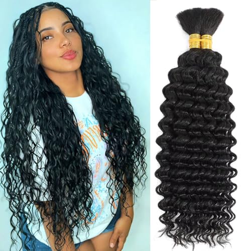 Bulk Human Hair for Braiding suitable for any Occasion: Our Deep Wave braiding human hair is different from the general hair extensions,There is no weft, making it incredibly versatile for various braiding styles. Such as bohemian braids, Knotless BOHO braids, Box braids, Cornrows, Twists, Curly loose wave hair styles,etc. You can also use it to add length and volume to your natural hair. Suitable for daily life, wedding, dating, graduation ceremony, vacation, parties, gifts and so on.