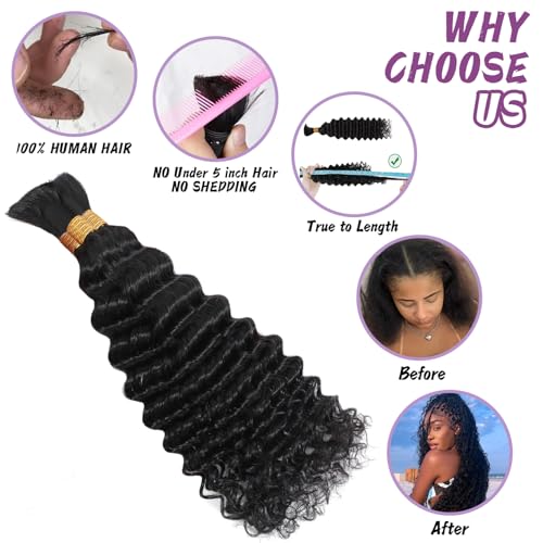Specification: Human Braiding Hair For Boho Braids Deep Water Wave Bulk Human Hair for Braiding 12A Wet and Wavy Curly 100% Human Hair Extensions 3 Bundles 110g Natural Color 20inch