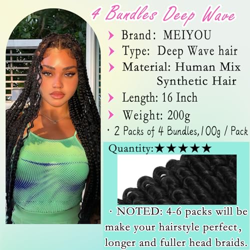 Specification: Human Braiding Hair Mix Synthetic Boho Hair for Braiding, 16 Inch 200g Boho Braids 4 Bundles Wet and Wavy Curly Deep Wave Bulk Bohemian Extensions for Black Women (Black, 16 Inch)