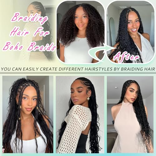 Premium Quality: Our boho hair for braiding is made of high quality synthetic fiber, mix some human braiding hair to improve the touch feeling. Soft, smooth, bouncy, tangle free, which is durable to ensure you enjoy the beautiful curly braiding hair