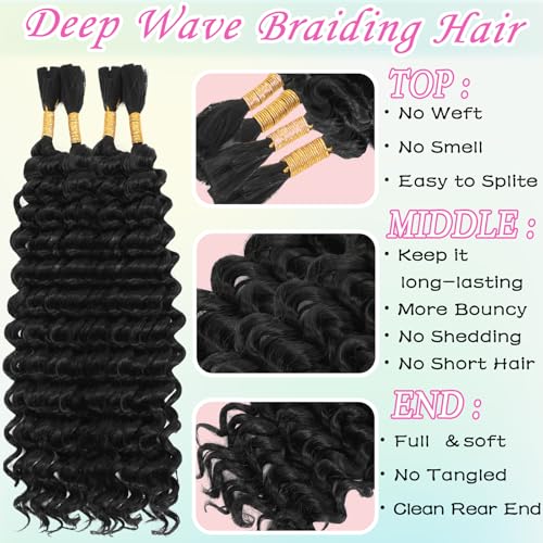 More Capacity Package: Deep wave bulk hair for braiding come with 4 bundles per pack. Wet and wavy braiding hair is 100g per bundle. 2-3 bundles are used to style for a head usually, 4 pcs will help you style a bouncy, fuller, more charming braiding hairstyles.