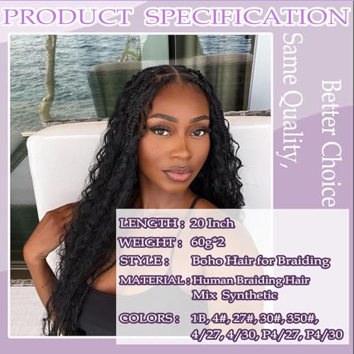 Specification: Human Braiding Hair Mix Synthetic Boho Hair for Braiding, 20 Inch Deep Wave Bulk for Boho Braids 2 Pcs Curly Bohemian Wet and Wavy Braiding Hair(1B, 20 Inch-2pcs)