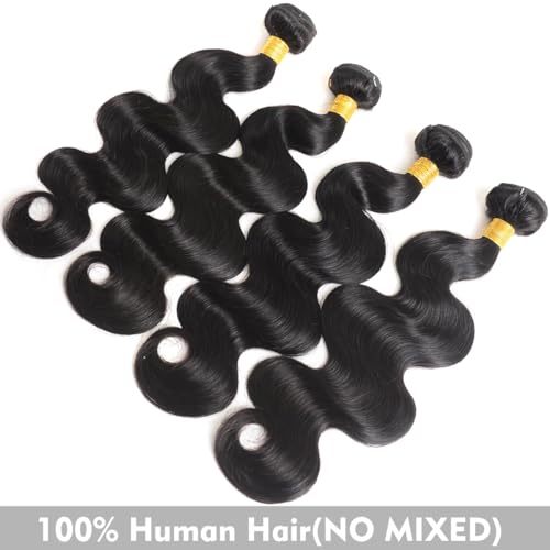Human Hair Bundles Body Wave 16 18 20 22 Inch 100% Unprocessed Brazilian Body Wave 4 Bundles Human Hair Extensions for Women Quick Weave Natural Color
