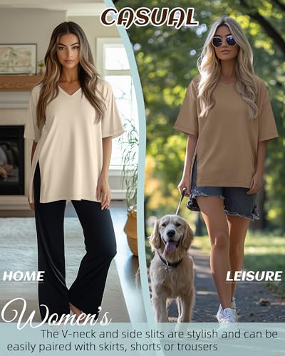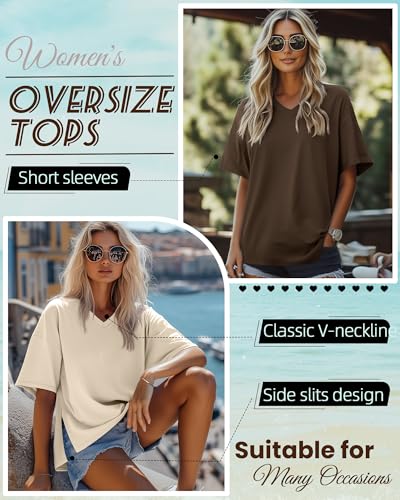 The v neck design of these baggy shirts for women adds a touch of femininity and elegance to these oversized shirts. The side slits increase comfort and ease of movement. Whether you are sitting, walking, or stretching your body, the shirt will not make you feel restricted, and it is fashionable and comfortable. The oversized version allows air to circulate, keeping you cool and comfortable one day. The short sleeve tunic tops for women are ideal for pregnant women to wear, providing room to grow baby bump, and it is also great for those who like a relaxed and casual style.