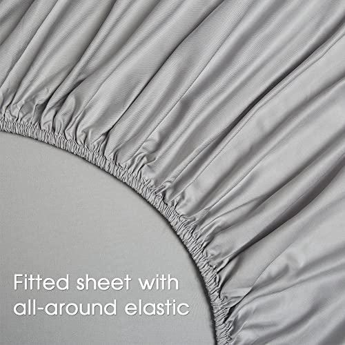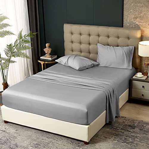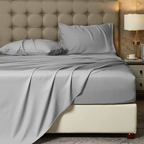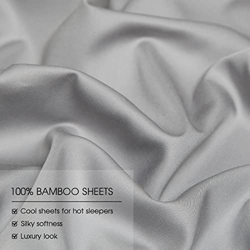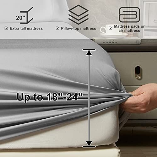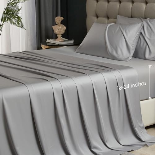 HYPREST Deep Pocket King Sheets- Rayon Derived from Bamboo, Extra Deep Pocket Fits 18″-24″ Thick Mattress, Light Grey Luxury Silky Cooling for Hot Sleepers
