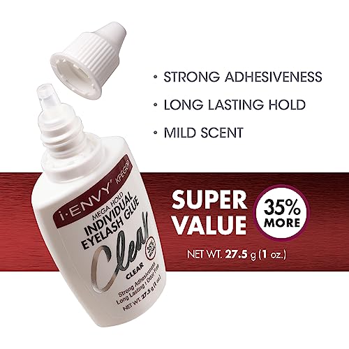 i-Envy by Kiss False Eyelash Adhesive Mega Hold Eyelash Adhesive Glue for Individual Cluster Lashes DIY Lash Extensions–Strong, Long Lasting Hold (Clear)
