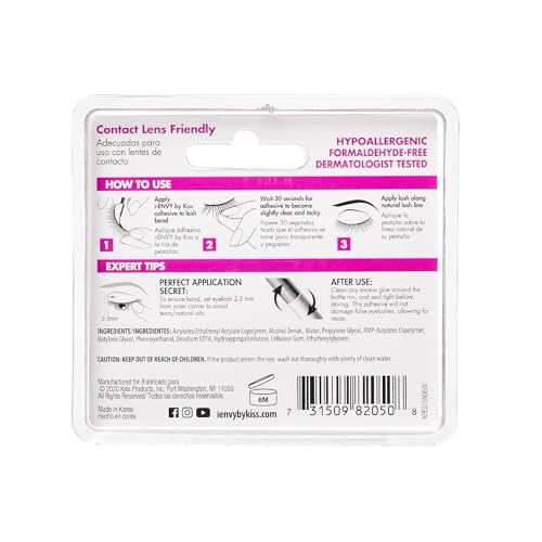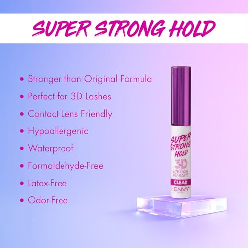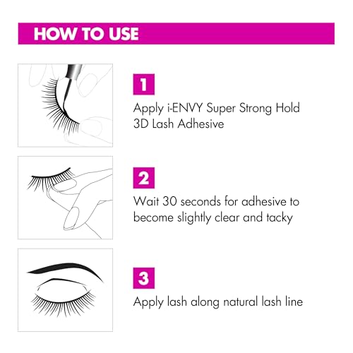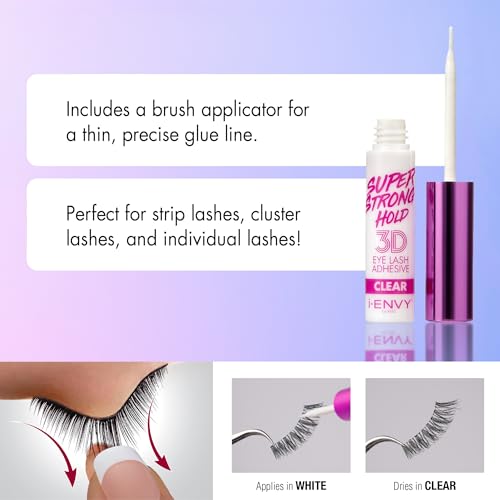 Specification: i-Envy by KISS Super Strong Hold 3D Strip Lash Glue (Clear), Waterproof Brush-On False Eyelash Adhesive, Latex-Free & Odor-Free, Long-Lasting & Easy Application, Ideal for Sensitive Eyes