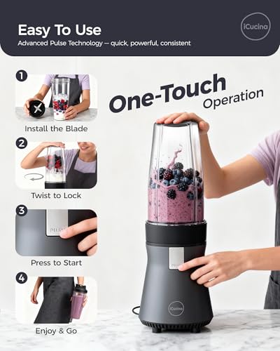 Specification: iCucina Smoothie Blender, Personal Blender for Shakes and Smoothies, 700W Pulse Technology Single Serve Blenders with 2 x 28oz Protable Cups for Ice Crush, Frozen Fruit Drinks