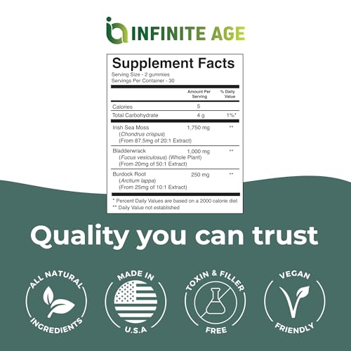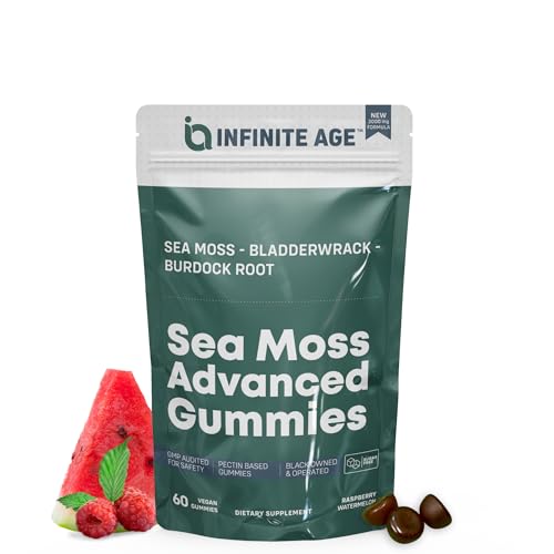 Specification: INFINITE AGE: Sea Moss Advanced Gummies, 60 Count – Delicious, Vegan, Made in USA – Irish Seamoss, Bladderwrack, Burdock Root – Overall Health, Immunity Support, Sea Moss Gummies for Women and Men