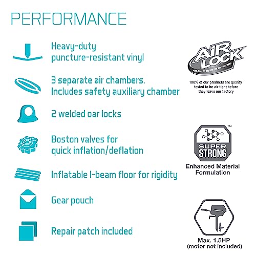 ✔ TRIPLE AIR CHAMBERS – Three air chambers , including one inner auxillary chamber for added safety to keep you afloat; inflation and deflation is made easy constructed with two quick-fill Boston valves to get you on the water faster