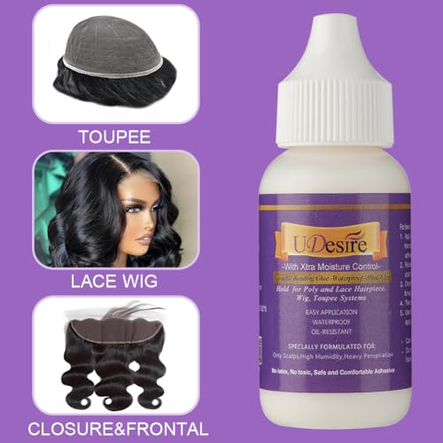 Invisible Bonding Glue- Waterproof 1.3oz-Extra Moisture Control-Light Hold Wig Glue for Poly and Lace Hairpiece, Wig, Toupee Systems Hair Replacement Adhesive