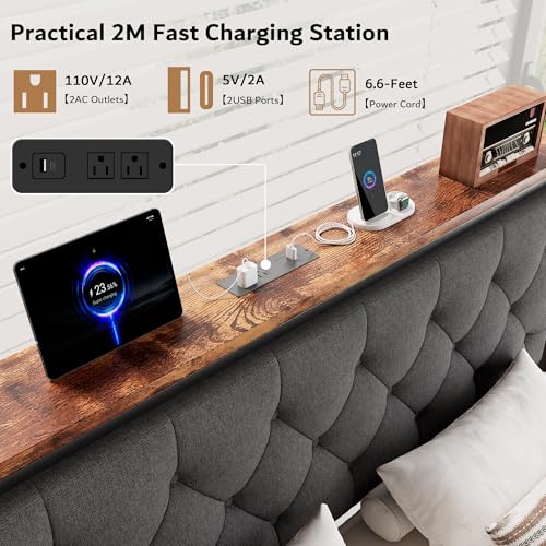 Charging Storage Headboard: The integrated charging station includes 2 outlets, 1USB port, and 1 Type-C port for all your device-charging needs. Equipped with sturdy, waterproof wooden platform fits snugly against the wall