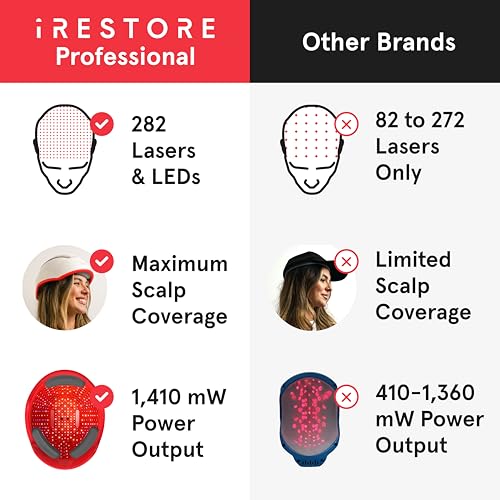 Specification: iRestore Professional Laser Red Light Therapy for Hair Growth System – FDA Cleared Hair Loss, Hair Thinning & Alopecia Treatment for Men & Women – 282 Lasers & LEDs