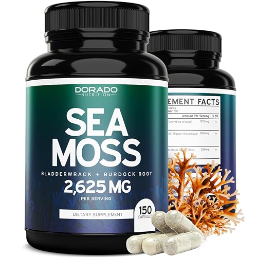 Specification: Irish Sea Moss Capsules 2,625mg (150 Capsules) with Bladderwrack & Burdock Root – Raw Seamoss Pills for Thyroid, Energy, & Immune Support – Third Party Tested, No Fillers, Vegan Safe, Made in USA