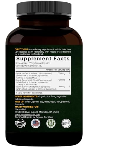 Specification: Irish Sea Moss Capsules, 3,000mg Per Serving, 240 Veggie Pills | Made with Organic Raw Powder, Plus Bladderwrack & Burdock Root, Sea Vegetable Complex – Immune & Thyroid Superfood Support – Non-GMO