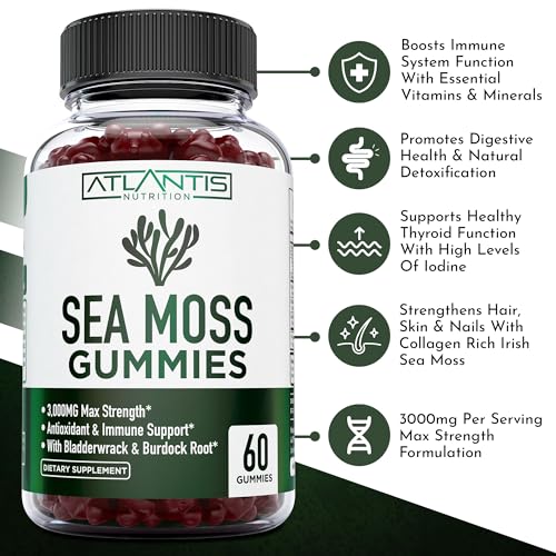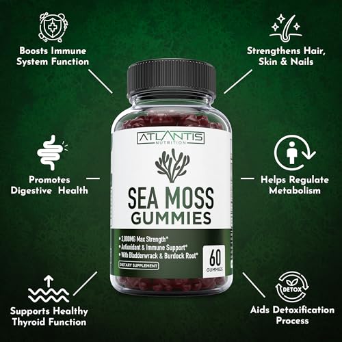 Tasty And Easy: Ditch the sea moss capsules and enjoy Atlantis Nutrition’s delicious sea moss advanced gummies. Savor the taste while getting all the benefits of sea moss, bladderwrack, and burdock root in these yummy gummies
