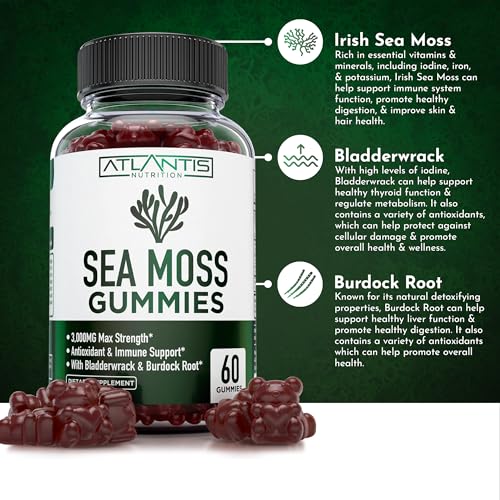 Specification: Irish Sea Moss Gummies – 3000MG – Formulated w/ Irish Sea Moss, Bladderwrack & Burdock Root, Contain Essential Vitamin & Mineral – Antioxidant-Rich Superfood Supplement, 60 Sea Moss Gummies for Adults