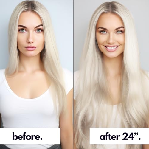 Specification: Irresistible Me Real Human Hair Extensions Clip Ins – 100% Human Hair Clip In Extensions for Length & Volume – Invisible Extension – Heat Resistant & Dyeable – Icy Blonde, 24 Inches