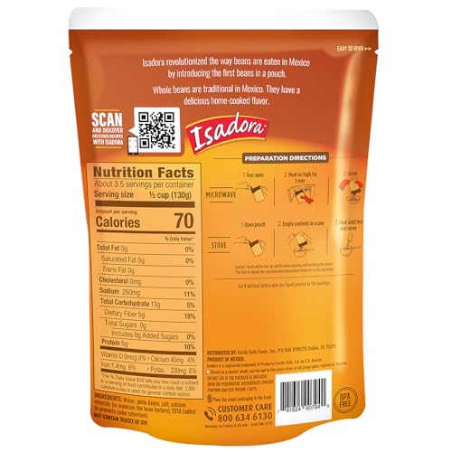 HOME COOKED TASTE: Isadora beans in a pouch preserve the original taste with superior flavor versus canned options. Preservative free, gluten free, BPA free, and high in fiber.