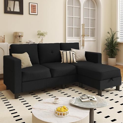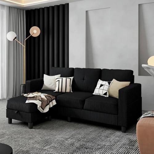 Specification: JAMFLY Sectional Sofas Couches for Living Room, L Shaped Couch with Storage Sofa Set, Small Couches for Small Spaces with Movable Ottoman, Black