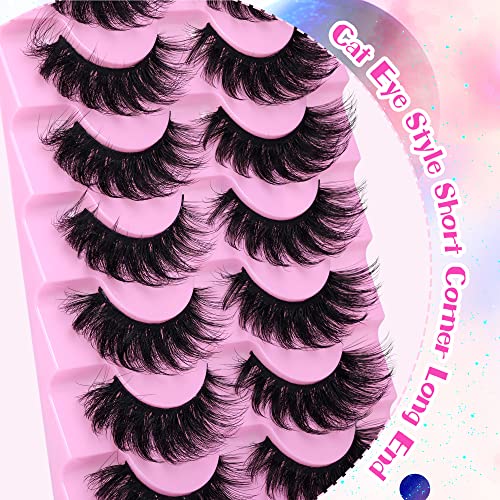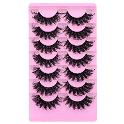 JIMIRE Faux Mink Lashes Fluffy Volume False Eyelashes Pack Dramatic Natural Look Wispy Cat Eye 18MM Fake Lashes 7 Pairs