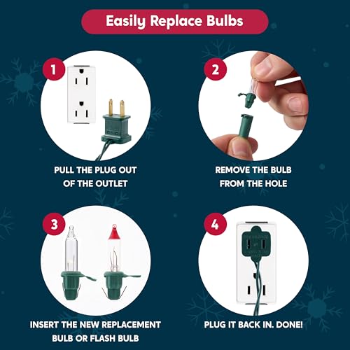INDEPENDENT CIRCUIT & REPLACEMENT BULBS – Enjoy a hassle-free holiday! Our lights feature an independent circuit system; if one bulb burns out, the rest stay lit. The set includes 3 spare bulbs, a replacement fuse, and 3 test flash bulbs., ensuring your display stays bright throughout the season without needing a full replacement.