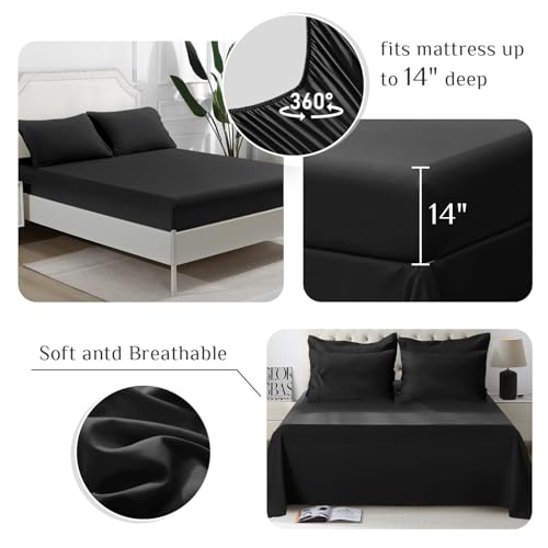 JOLLYVOGUE Queen Comforter Set, Ultra-Soft Bed in a Bag Queen Size 7 Pieces, Oeko-TEX Certified Bedding Set with Down Alternative Comforter, Sheets, Pillowcases & Shams, Black