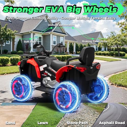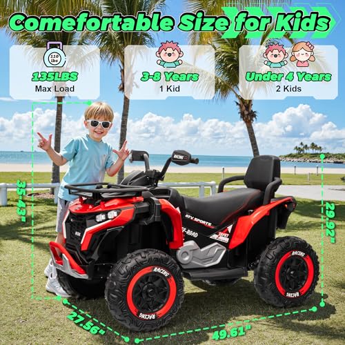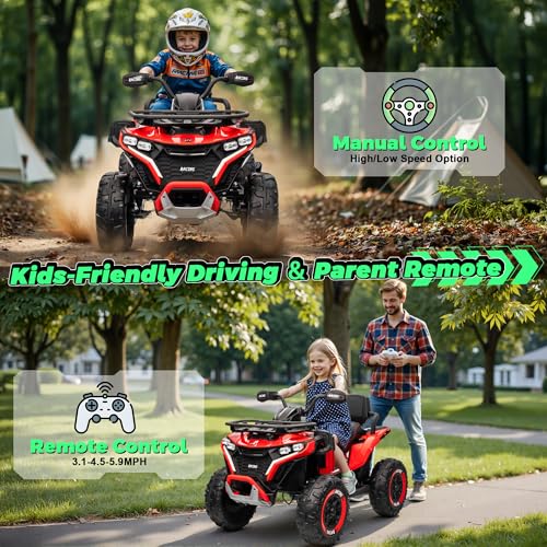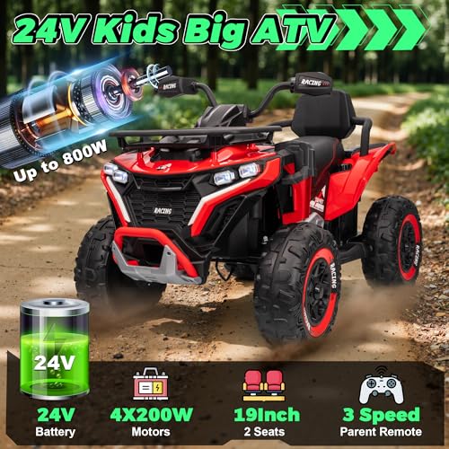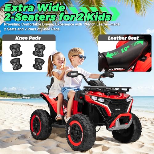 Specification: JOYRACER 24V Ride on Car, Kids ATV XL Four Wheeler w/EVA Tires, 19-Inch Leather 2 Seater, 800W Motors, Remote Control, Knee Pads, Flower, 24 Volt Ride on Toys Quad for Big Kids, Red